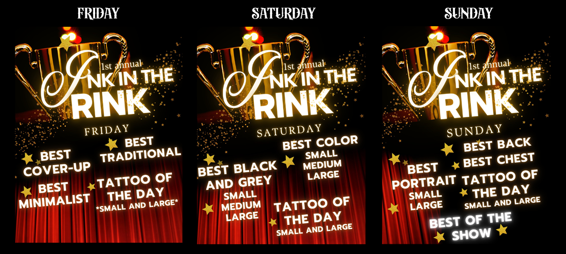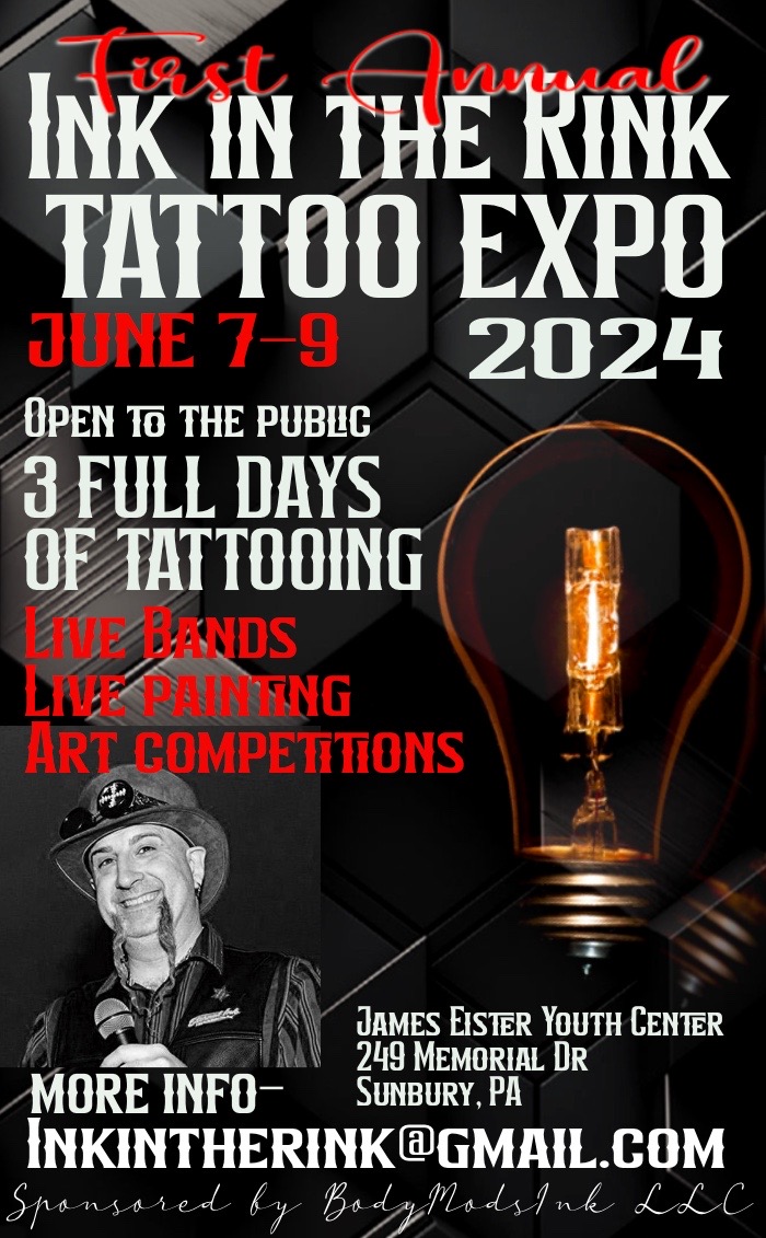 JOIN US JUNE 7TH, 8TH AND 9TH IN THE JAMES EISTER YOUTH CENTER IN SUNBURY, PA FOR OUR FIRST ANNUAL INK IN THE RINK TATTOO EXPO!